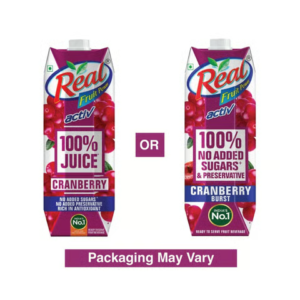 No added colour or artificial flavours. No added sugar & no added preservatives. Rich in antioxidant. Product Highlights Flavour: Cranberry. Shelf Life: 7 months Ingredients: Water, Fruit Juice Concentrate [Apple Juice Concentrate (13.5%) & Cranberry Juice Concentrate (2.5%), Equivalent to 80% Apple Juice & 20% Cranberry Juice], Acidity Regulator (INS 330), Flavours (Nature Identical Flavouring…