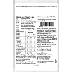 Made from 100% Suji / Durum Wheat- No Maida, High in Fiber & Protein, Cholesterol-Free, Zero Trans Fat Ingredients- Durum Wheat Semolina / Suji Nutrition- Energy (kcal) 361.0, Proteins (g) 10.5, Total Carbohydrates (g) 77.5, Dietary Fiber (g) 3.0, Total Sugar (g) 0.0, Total Fat (g) 1.0, Saturated Fatty Acids (g) 0.3, Calcium (mg) 2.8,…
