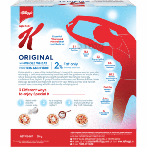 Kellogg’s Special K Original with Whole Wheat is a low-fat, ready-to-eat cereal with the goodness of whole wheat and bran. It is high in B Vitamins and Vitamin C and is a source of protein and fibre. It can be had with skimmed milk, whisked yoghurt, fruits and dry fruits. Product Highlights Type: Corn Flakes Everyday…