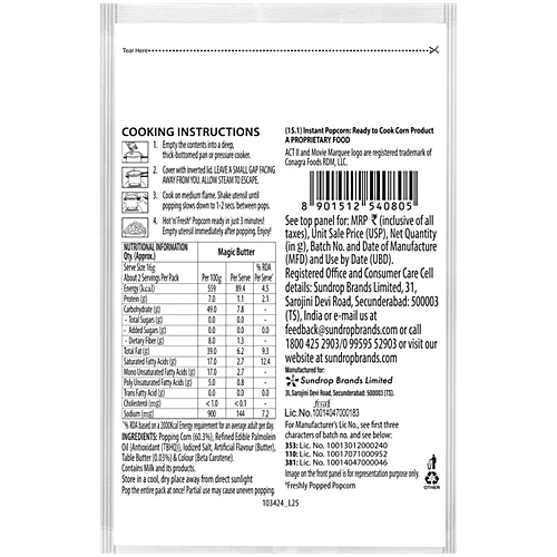 Act II brings to you Instant Popcorn corn kernels that help you make delicious popcorn within minutes. Now enjoy delicious hot popcorn at home. It contains the flavour and the wholesome goodness of 100% wholegrain popcorn. It is filled with fibre that helps you to not feel hungry. Serve it at your parties and everyone will love and enjoy it.