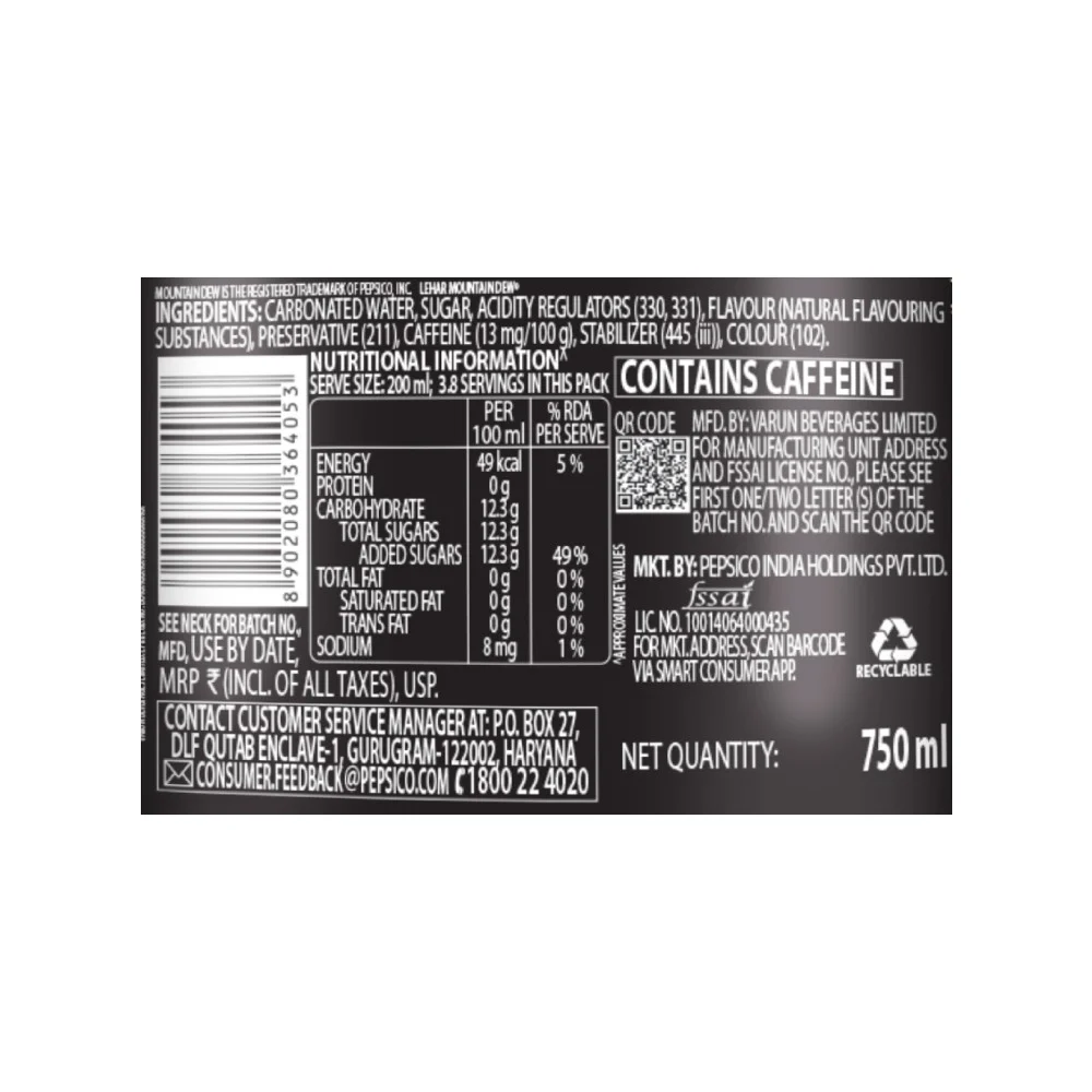 Elevate your refreshment experience with the Mountain Dew 750ml cold drink. This bottle is packed with the bold refreshing citrus flavor you love, now available to share with friends. Its crisp taste and exhilarating fizz make it the perfect companion for your daring adventure.