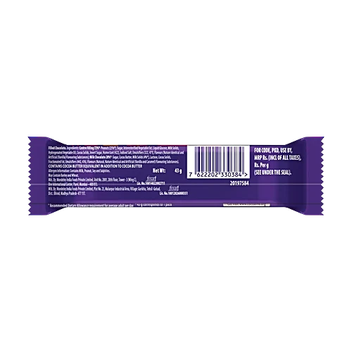 Centre Filling 72%* – Peanuts (25%*), Sugar, Interesterified Vegetable Fat, Liquid Glucose, Milk Solids, Hydrogenated Vegetable Oil, Cocoa Solids, Invert Sugar, Humectant (422), Iodised Salt, Emulsifiers (322, 471), Flavours (Nature Identical and Artificial (Vanilla) Flavouring Substances); Milk Chocolate 28%*-Sugar, Cocoa Butter, Milk Solids (4%*), Lactose, Cocoa Solids, Fractionated Fat, Emulsifiers (442, 476), Flavours (Natural, Nature Identical and Artificial (Vanilla and Caramel) Flavouring Substances)