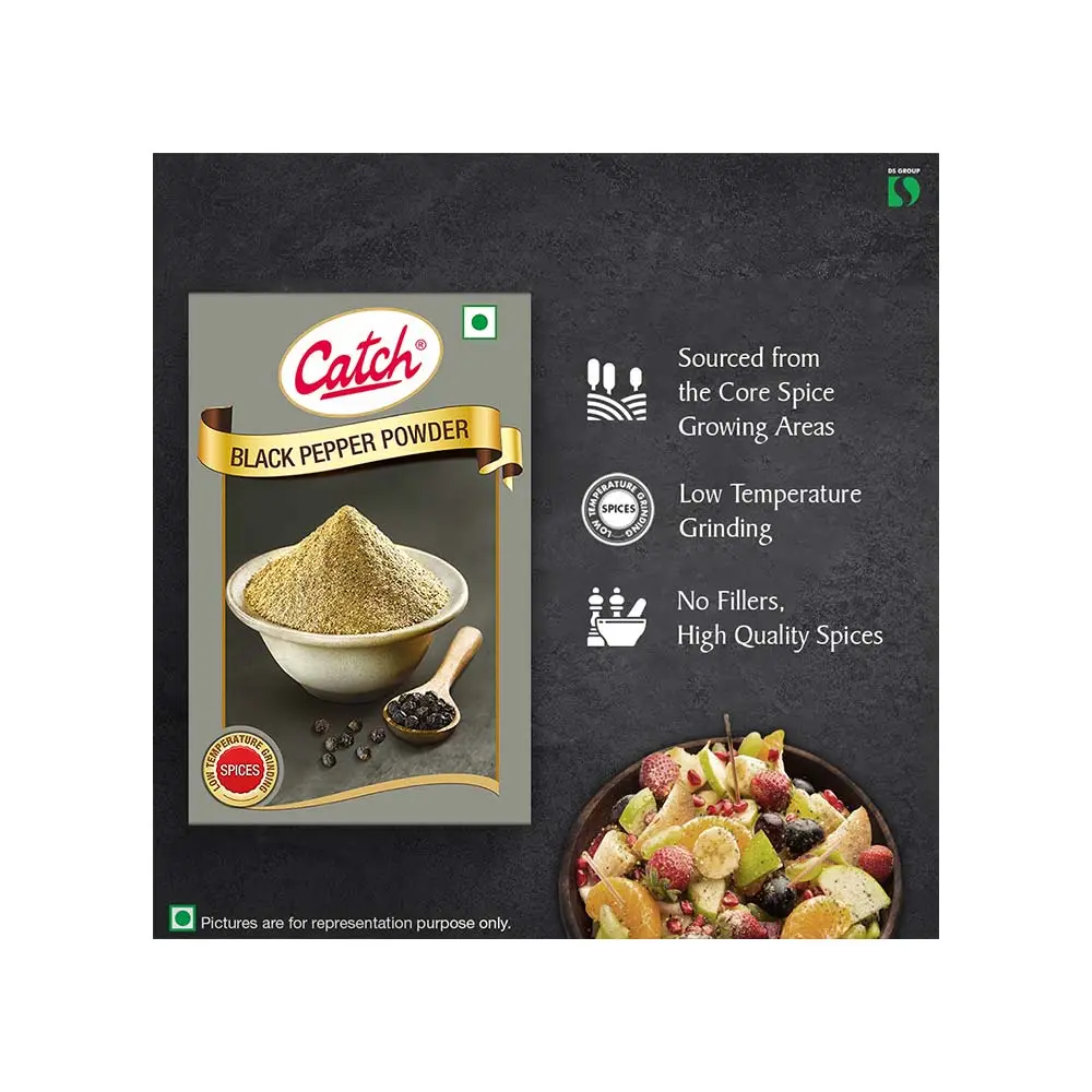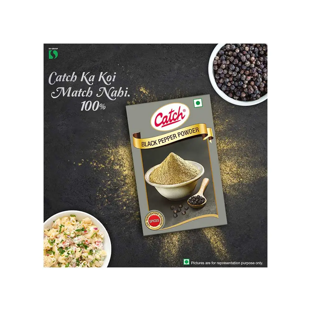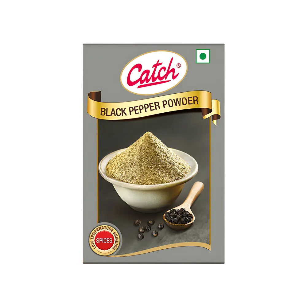 Catch Black Pepper Powder is a versatile spice that adds zest to soups, stews, salads, and Indian delicacies. Made from the finest whole peppercorns sourced from prime Malabar farms, it is processed using Low Temperature Grinding Technology to retain natural oils, aroma, and flavor, ensuring authentic taste in every dish.