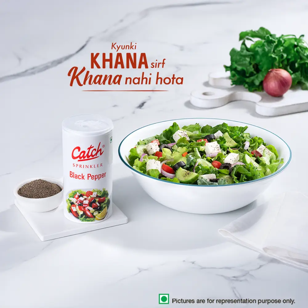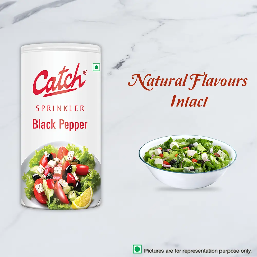 Catch Sprinklers offer a convenient range of dining table condiments, eliminating the need for a pepper shaker. Made from bold, high-piperine black pepper sourced from Karnataka and Kerala, it adds a spicy punch to any dish. Packed in a HIPS container, it stays dry and ensures smooth sprinkling, while the natural sundried process preserves authentic flavor and quality.