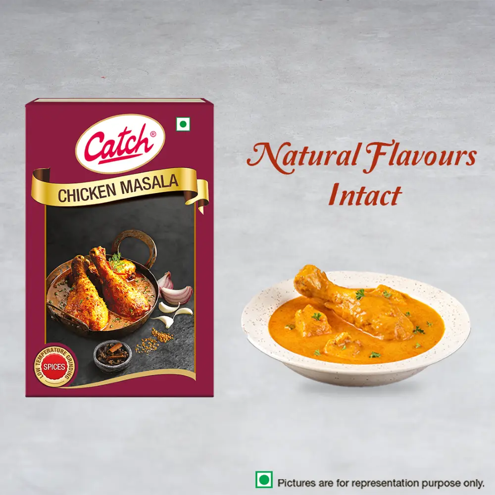Relish home-cooked chicken with Catch Chicken Masala, a blend of specially selected Indian spices that makes every dish flavorful. Versatile enough for international recipes, it contains no additives, preservatives, or artificial coloring. Available in 8g, 16g, 50g, 100g, and 200g packs. Storage: Keep in a cool & dry place.