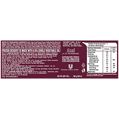 Kwality Wall’s Choco Brownie Fudge is a delectable frozen dessert that marries the richness of chocolate with the indulgence of fudgy brownies. Featuring a velvety chocolate base, it is swirled with generous chunks of fudge brownie pieces, creating a symphony of flavours and textures. Perfect for chocolate lovers, this treat offers a luxurious experience with every spoonful, blending smooth chocolate with delightful brownie bits for a truly satisfying dessert.