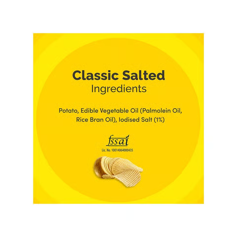 Ingredients: Potato, edible vegetable oil (palm olein oil, rice bran oil), iodized salt (1%).
