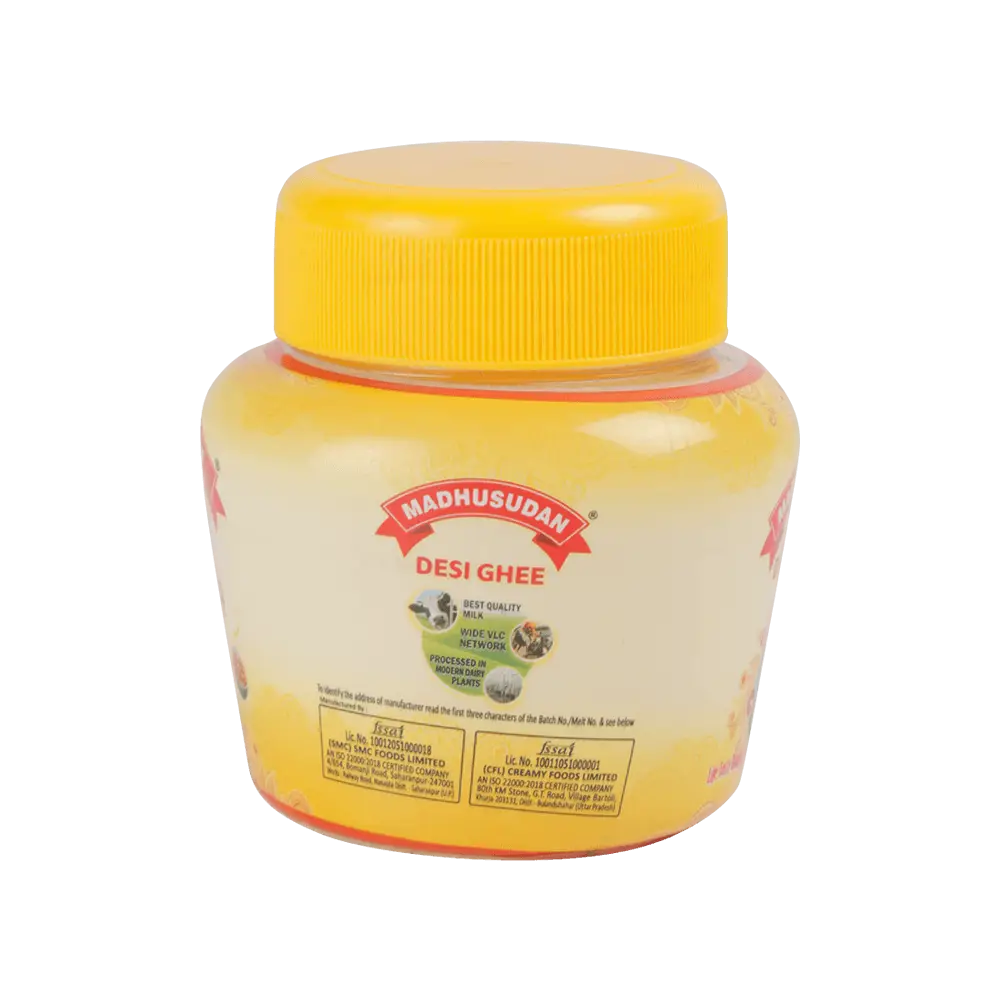 Madhusudan Cow Ghee is made from pure cow milk . It’s commonly used in Indian cooking. It’s a excellent source of B-Carotene which gives Vitamin A & Vitamin D. Madhusudan Ghee has a rich taste.