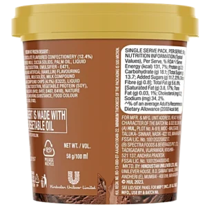Spoon Me! Enjoy classic vanilla with rich chocolate sauce and butterscotch crunchies in every bite of Kwality Wall’s Chocotastic Sundae. The delightful taste is sure to tame your sweet cravings. Indulge in a cup full of happiness. Ingredients Water, Chocolate Flavoured Confectionery (16.9%) (Water, Sugar, Condensed Milk, Cocoa Solids, Palm Oil, Liquid Glucose, Milk Solids, Maltodextrin,…